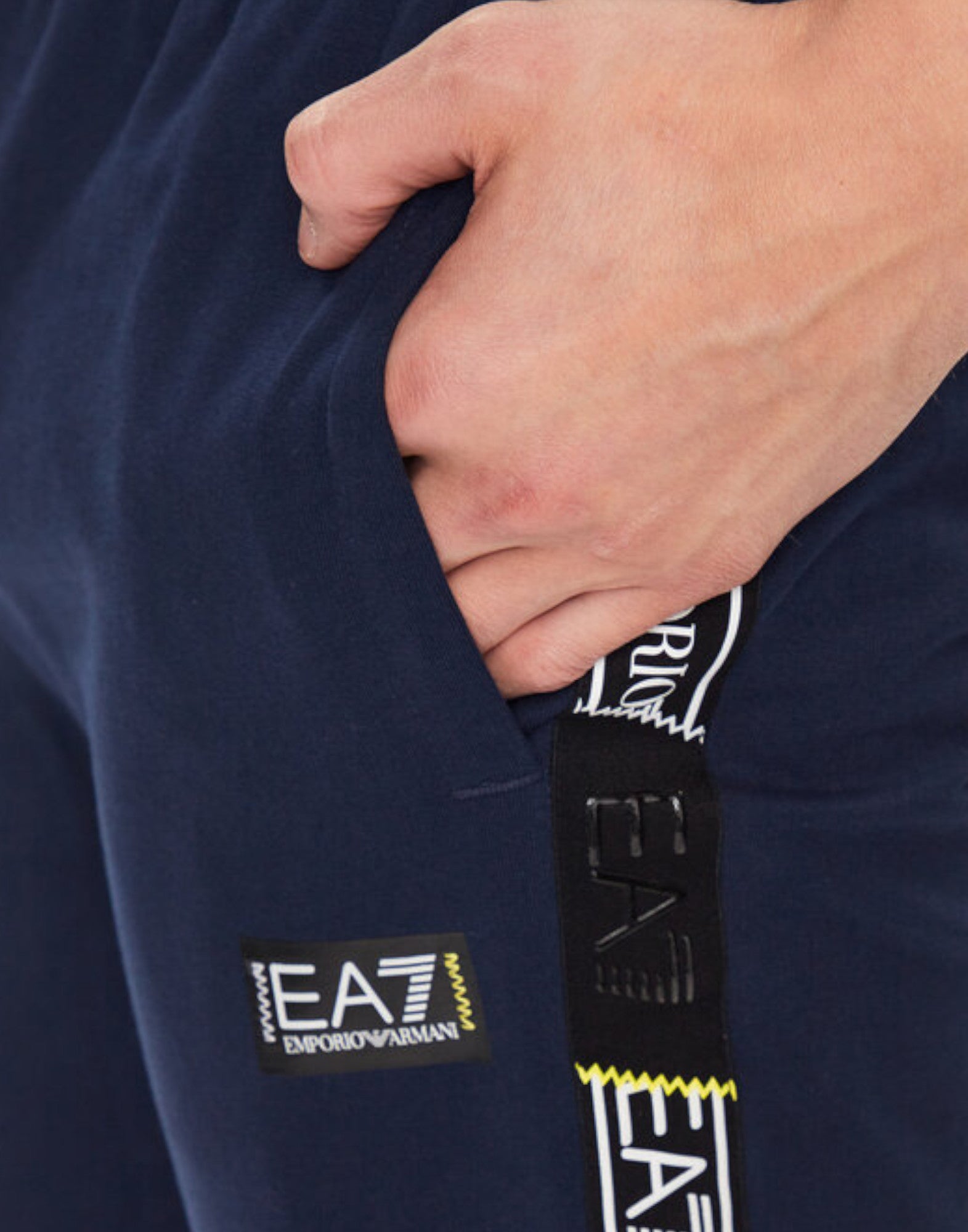 EA7 Emporio Armani Pantalone Blu da Uomo, bande con logo sui lati. Logo a contrasto nella parte anteriore.
