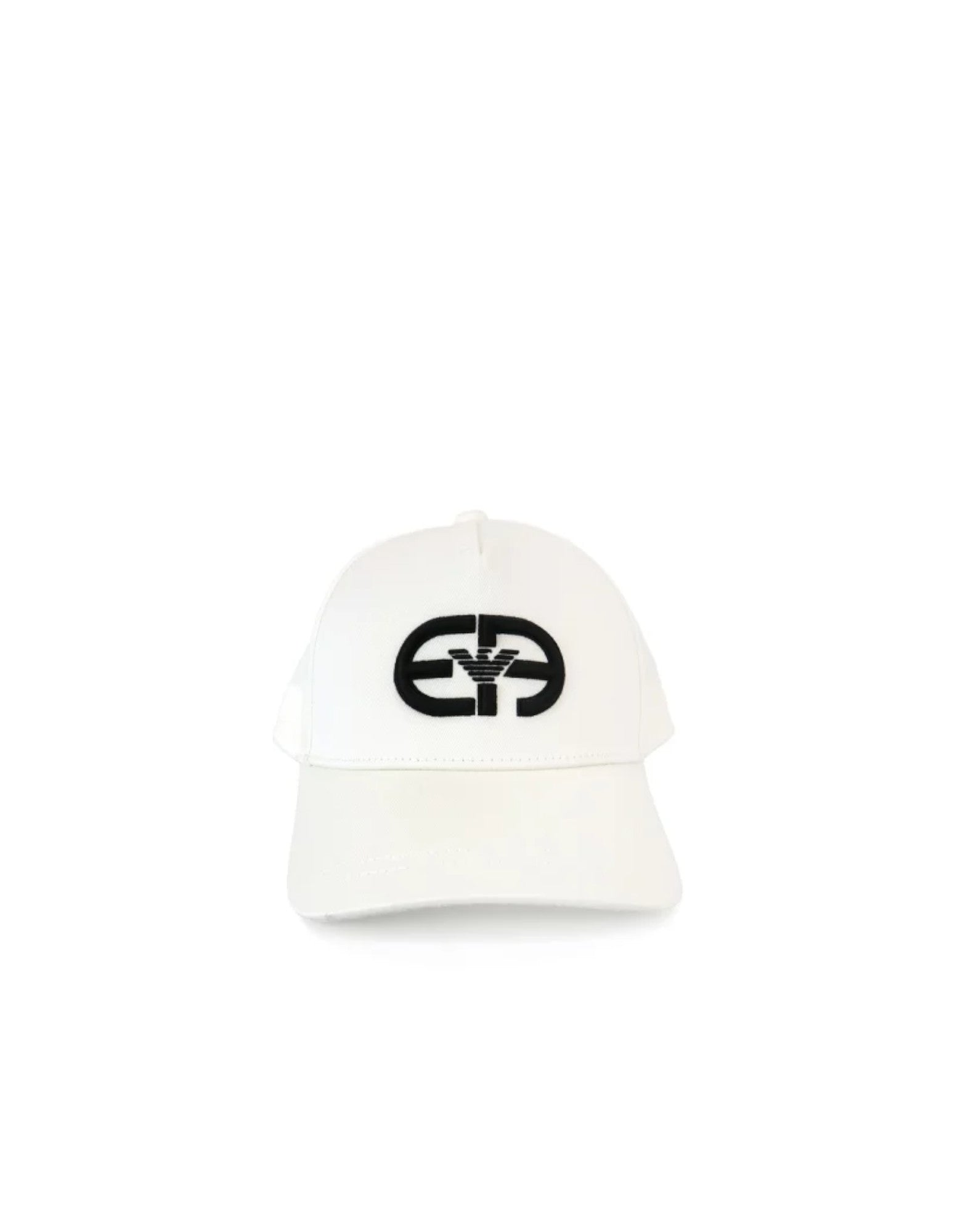 EMPORIO ARMANI CAPPELLO DA BASEBALL WHITE CON LOGO r-EAcreate RICAMATO BLACK.