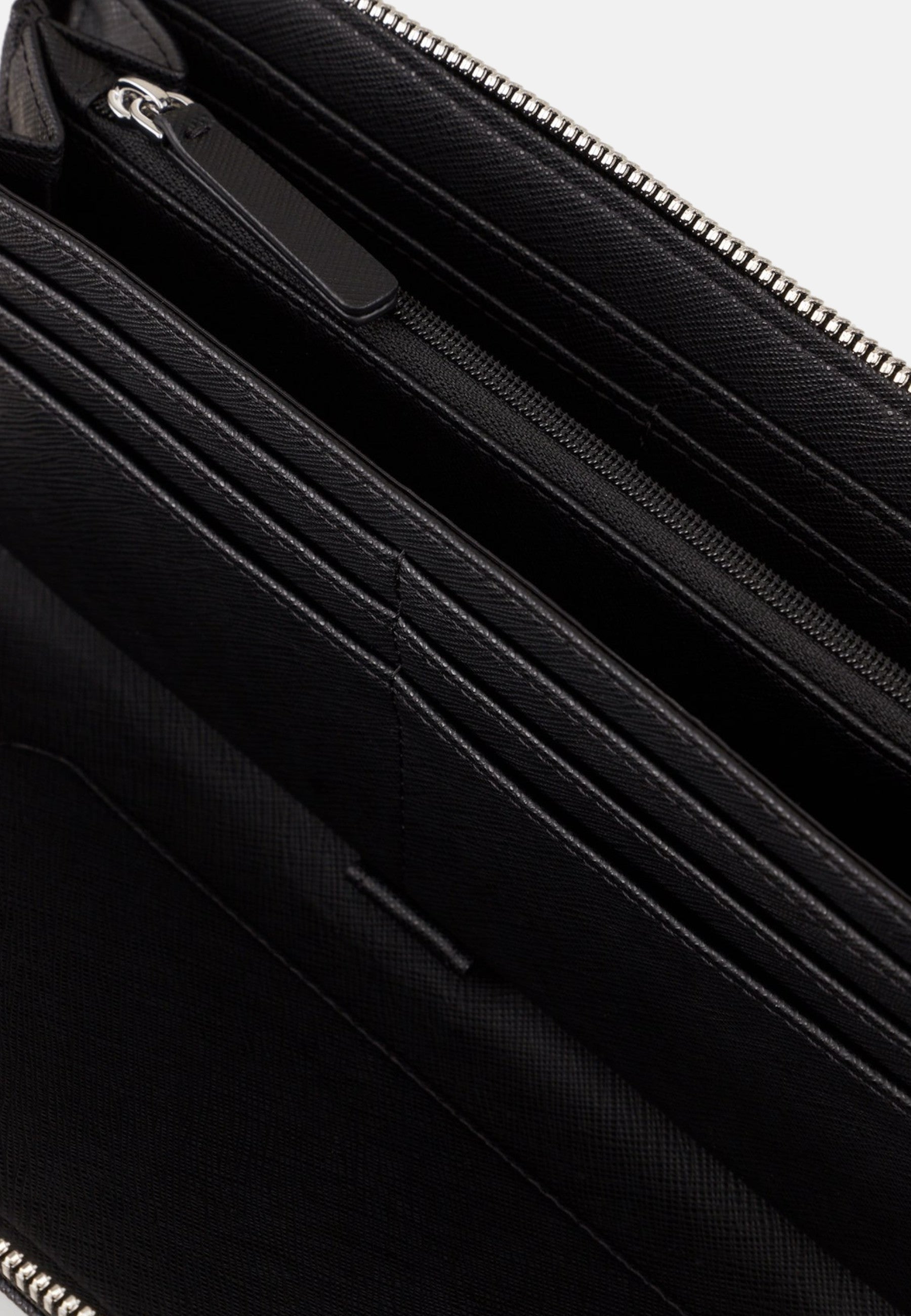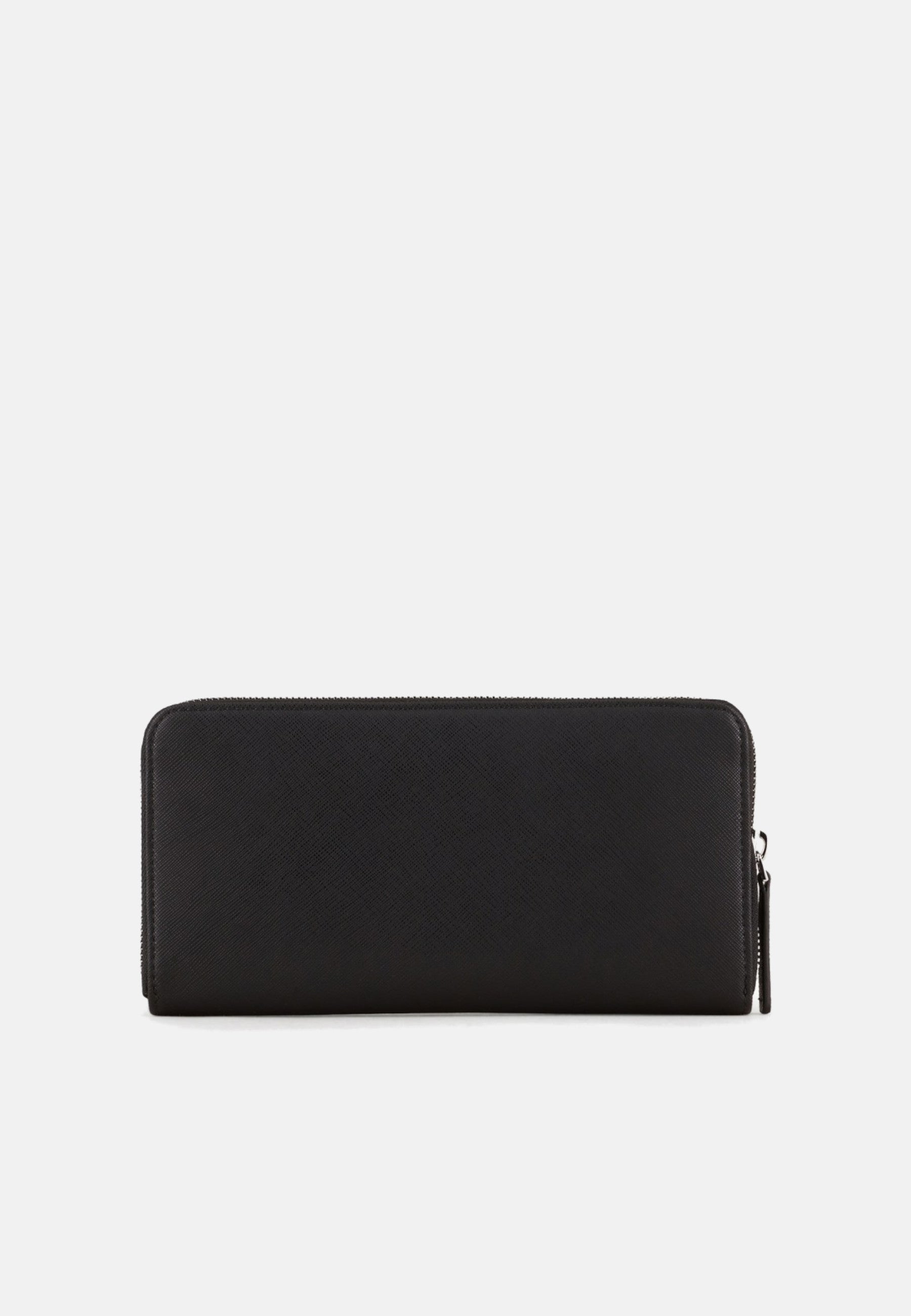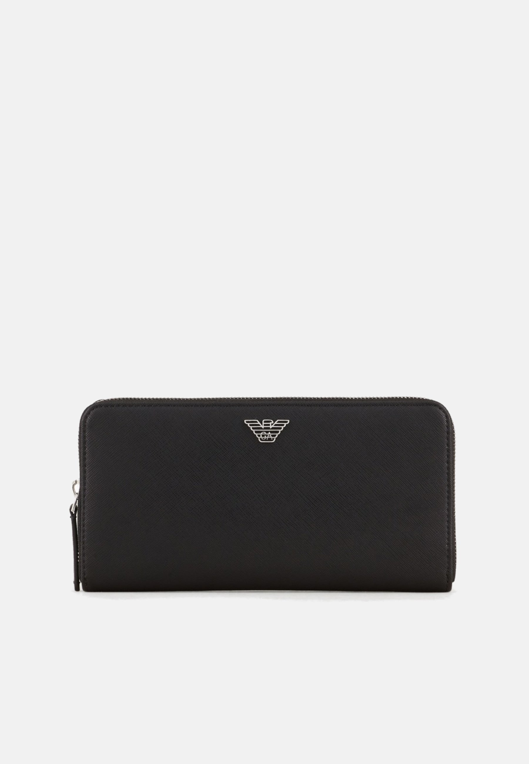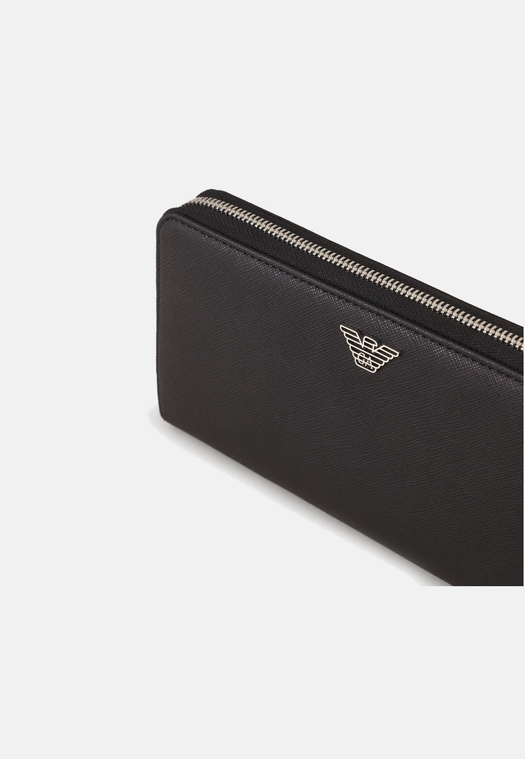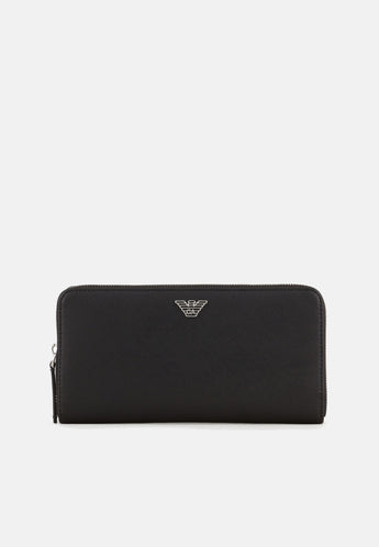 Emporio Armani Portafoglio Zip Around In Pelle Rigenerata Saffiano Black Placchetta Aquila Asv