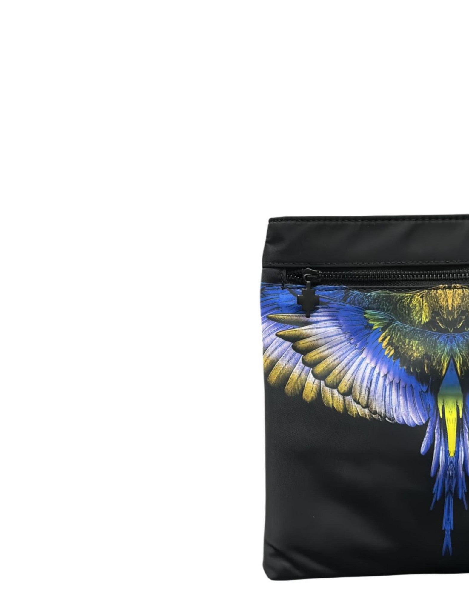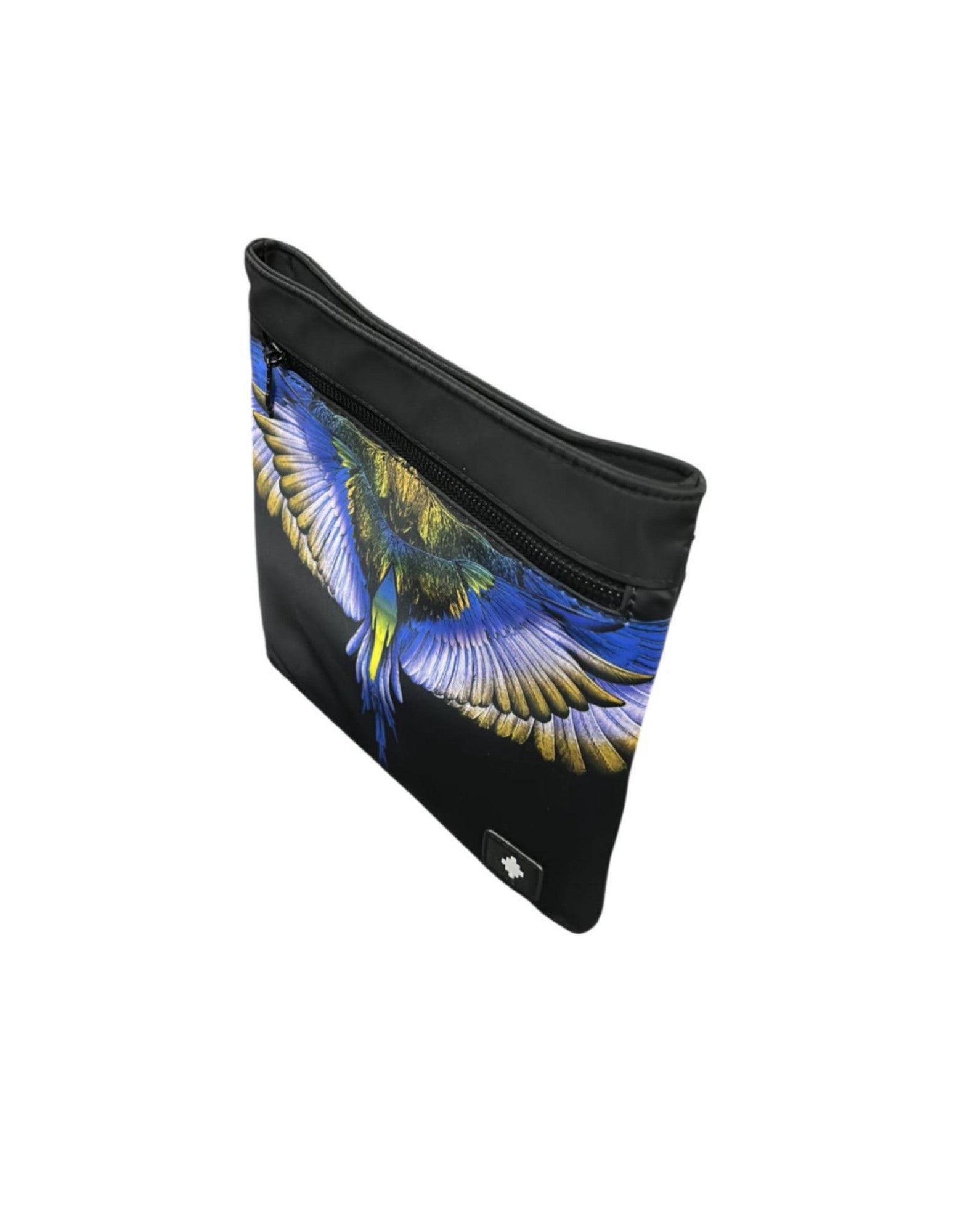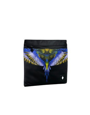 Scopri la pochette di County of Milan, un accessorio che unisce arte e funzionalità. Decorata con un motivo vibrante che ricorda un uccello in volo, questa pochette è perfetta per chi ama distinguersi.