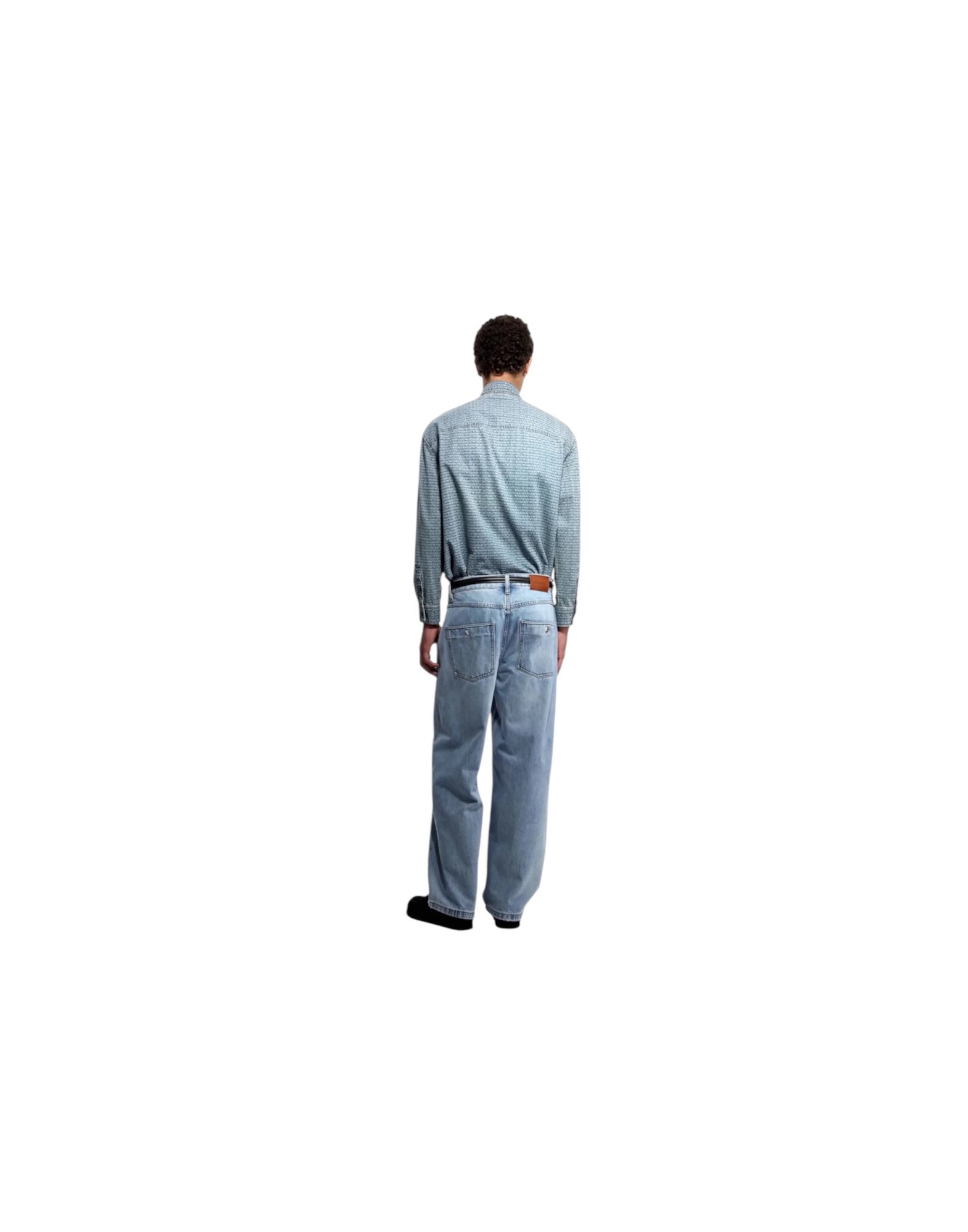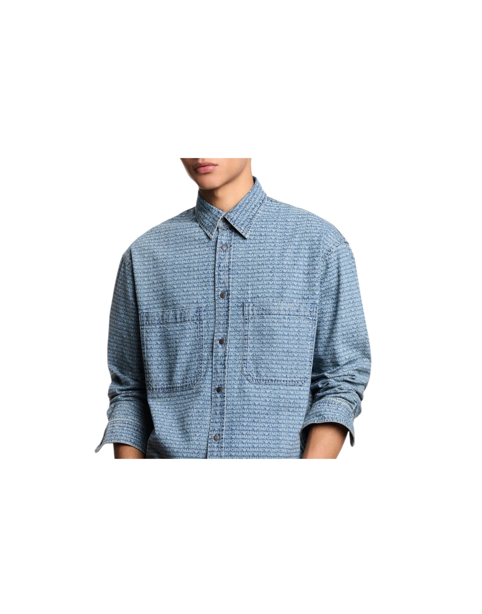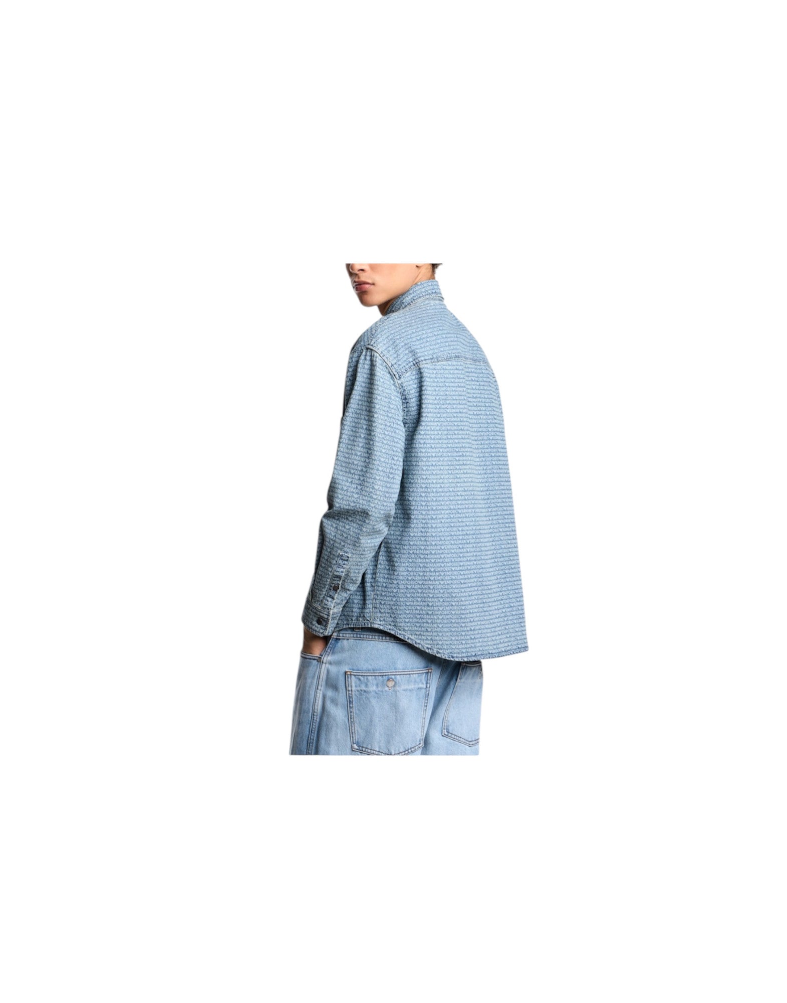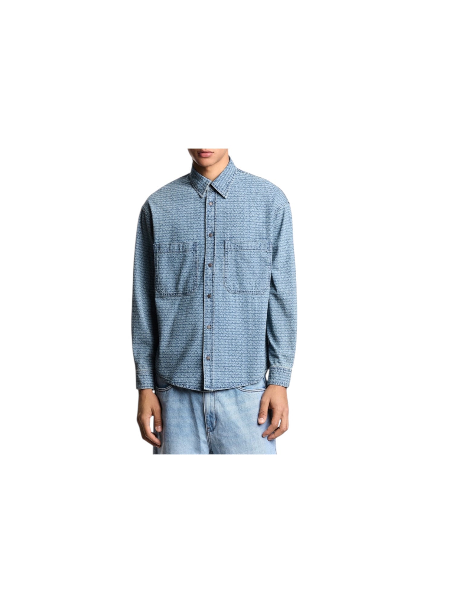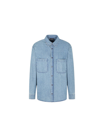 Emporio Armani Camicia Comfort Fit In Denim Con Stampa Logo Lettering All Over