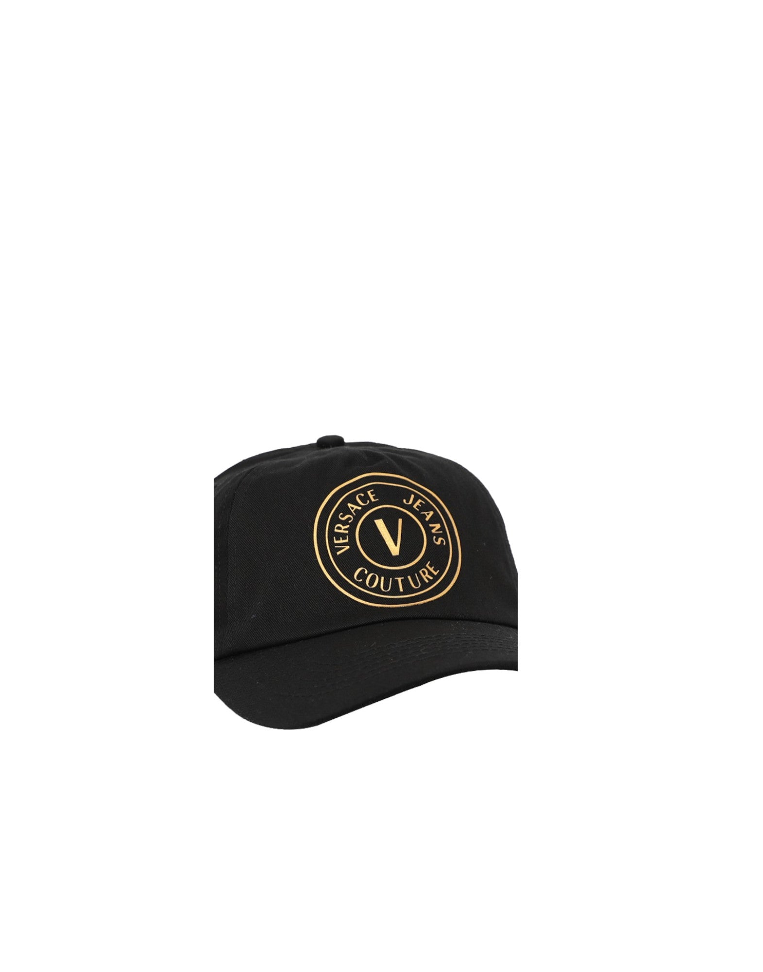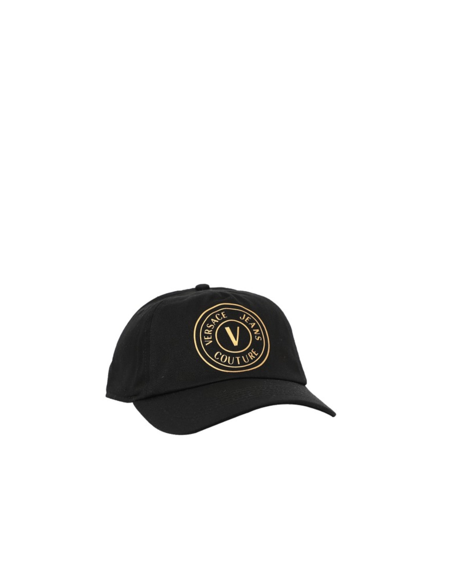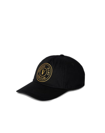 VERSACE JEANS COUTURE CAPPELLO BASEBALL UNISEX BLACK IN COTONE CON LOGO GOLD.