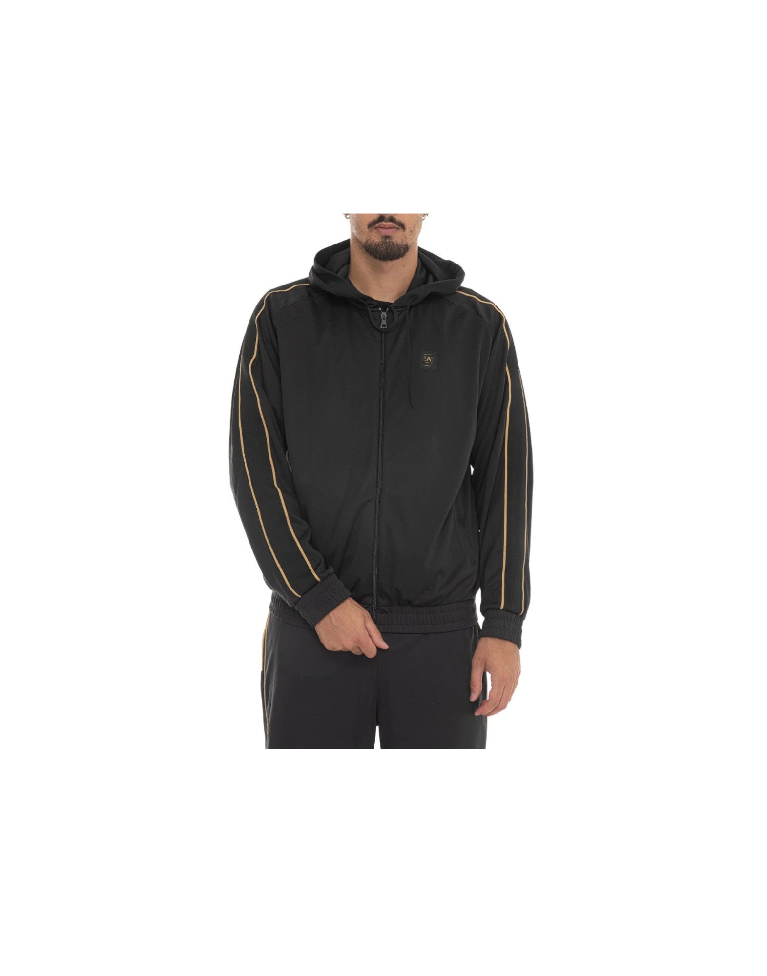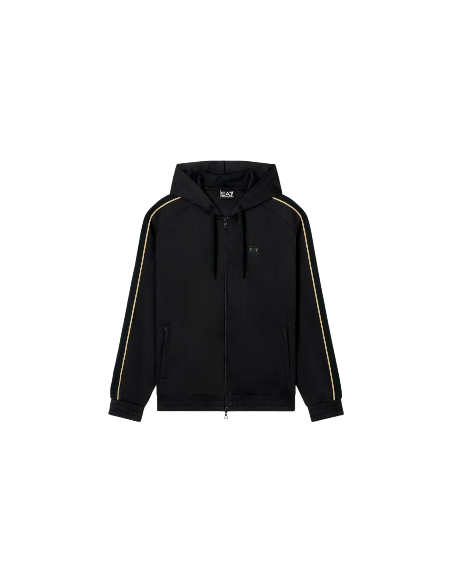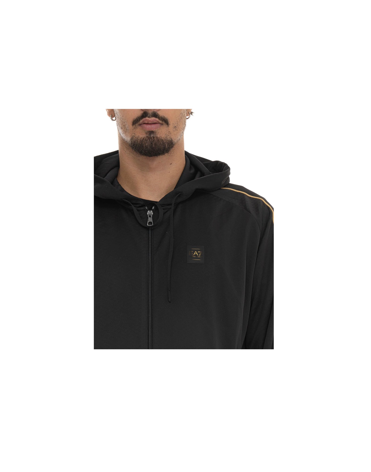 Ea7 Emporio Armani Felpa Nera Con Zip E Cappuccio