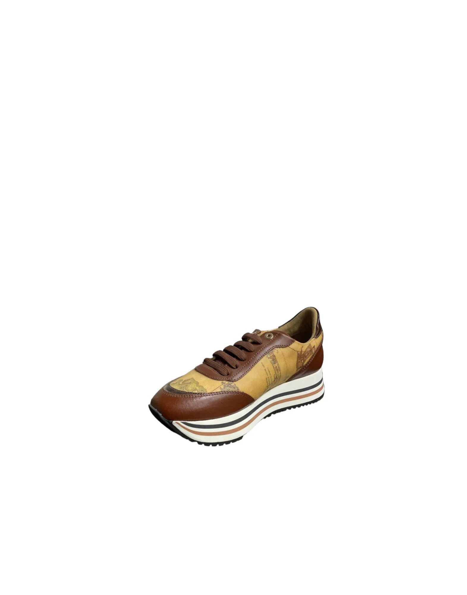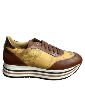 Alviero Martini Prima Classe Sneakers marrone con stampa Geo Classic. Interno in pelle con soletta estraibile. Chiusura sneakers con lacci.