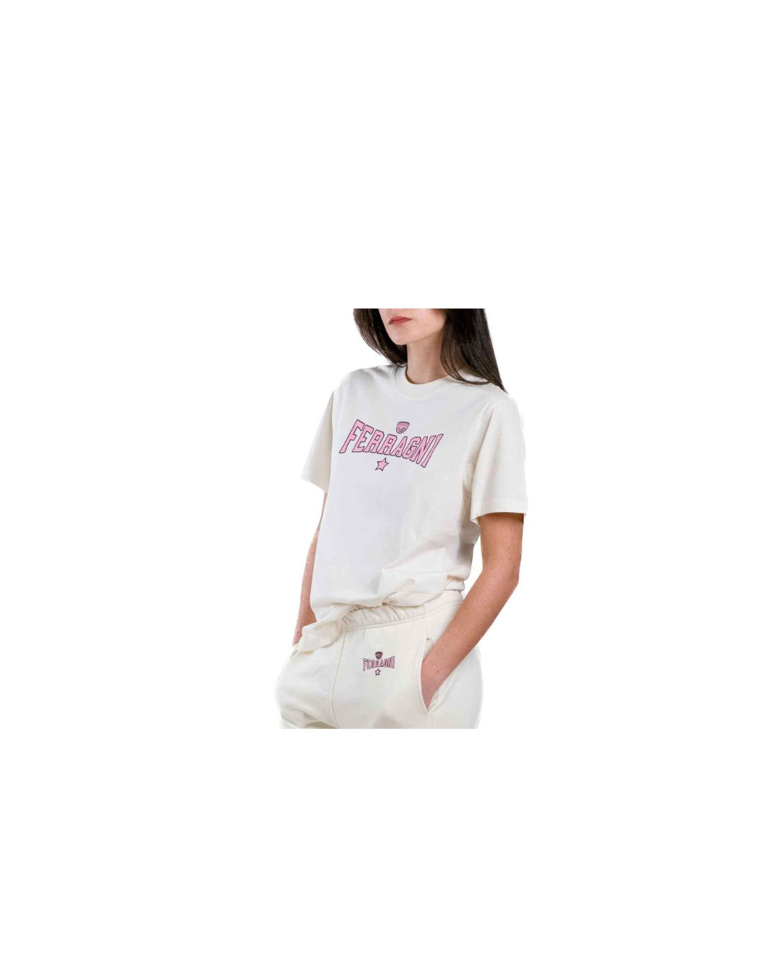 Chiara Ferragni T-shirt regular fit in cotone a manica corta con logo FERRAGNI rosa stampato nella parta anteriore.