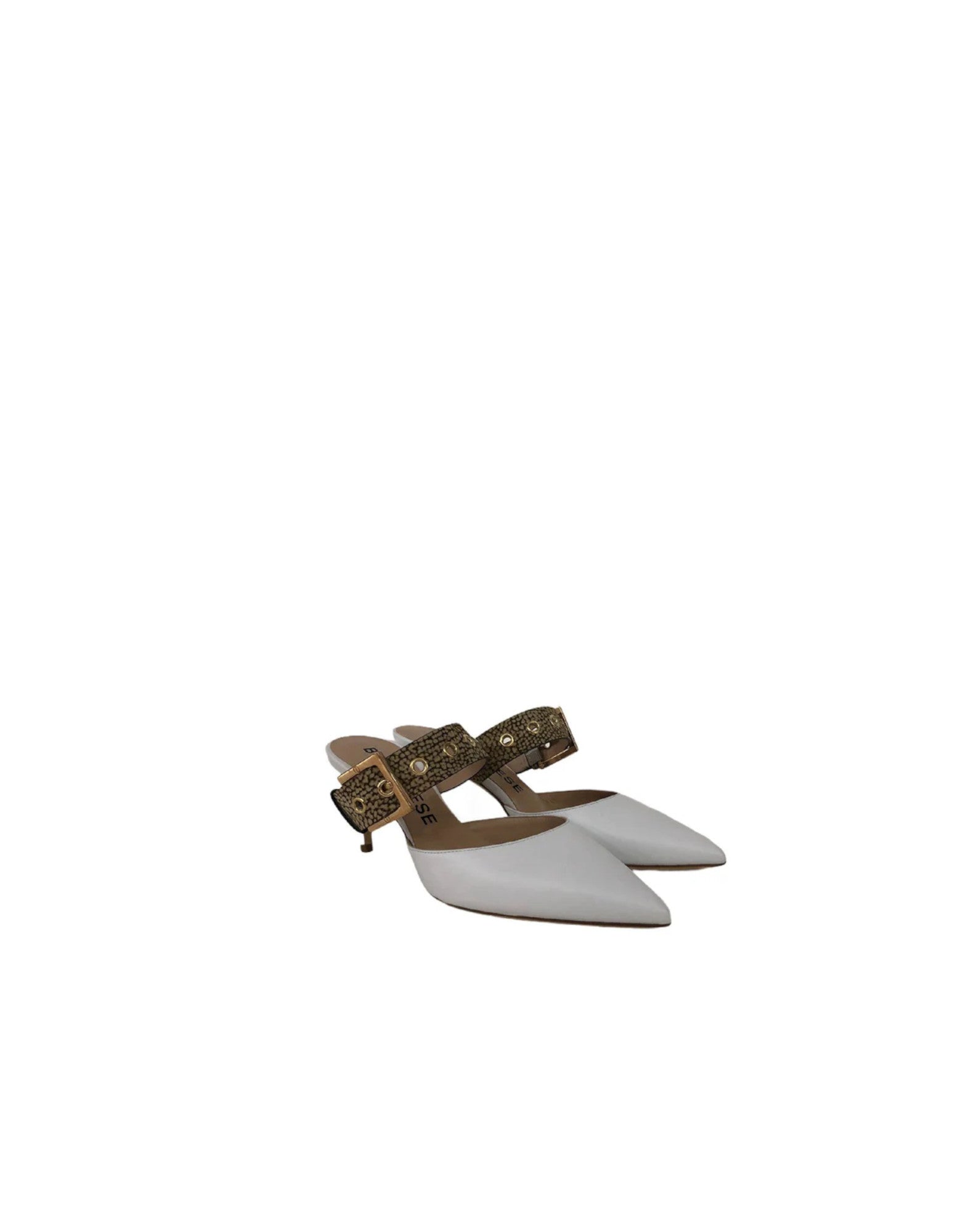 Borbonese Décolleté Da Donna In Pelle Bianco Con Chiusura Con Fibbia In Pelle Di Nabuk