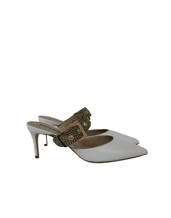 Borbonese Décolleté da Donna in Pelle Bianco con chiusura con fibbia in pelle di Nabuk. Tacco 7 Cm.