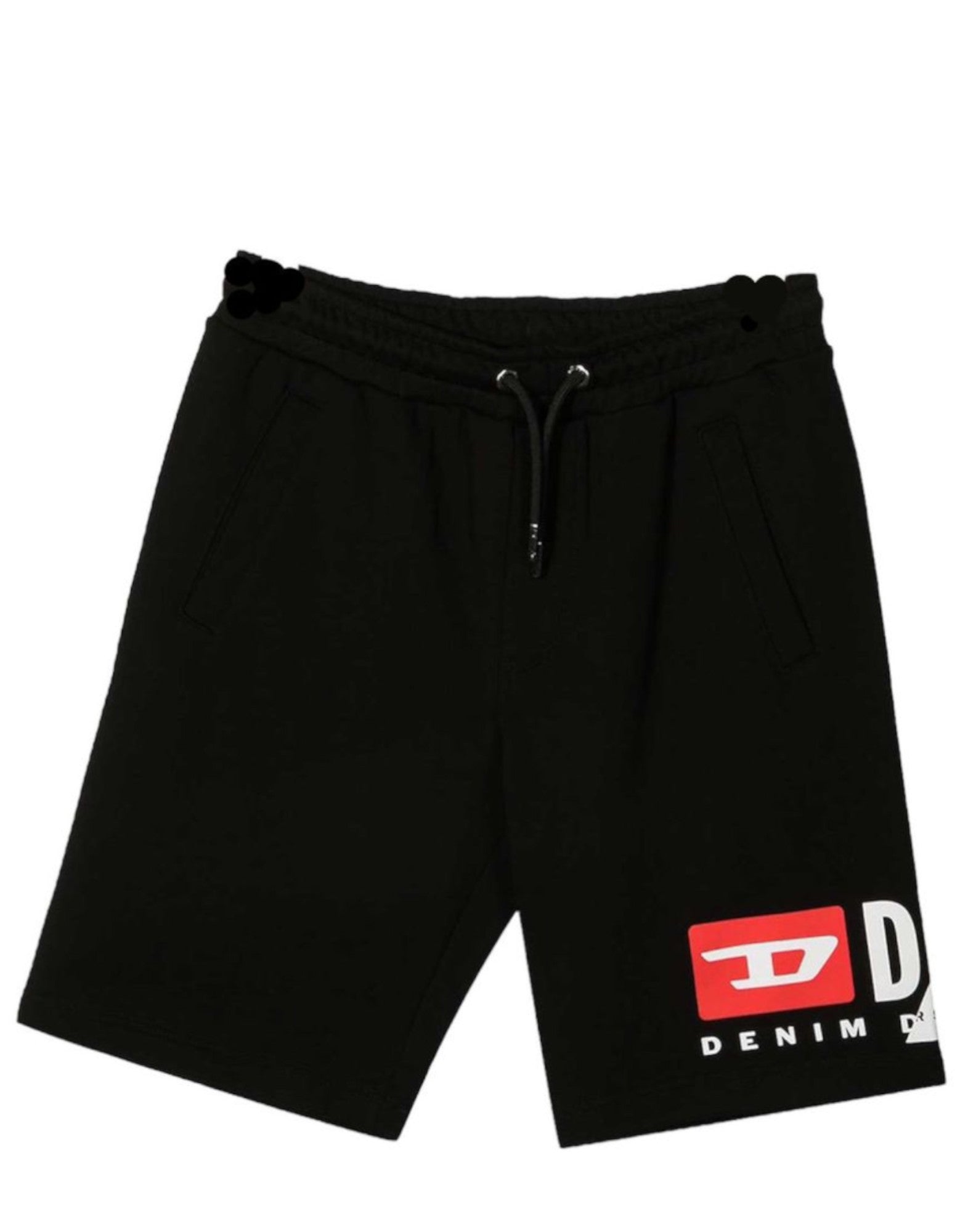 Diesel Pantaloncino nero in cotone con logo a contrasto nella parte anteriore.