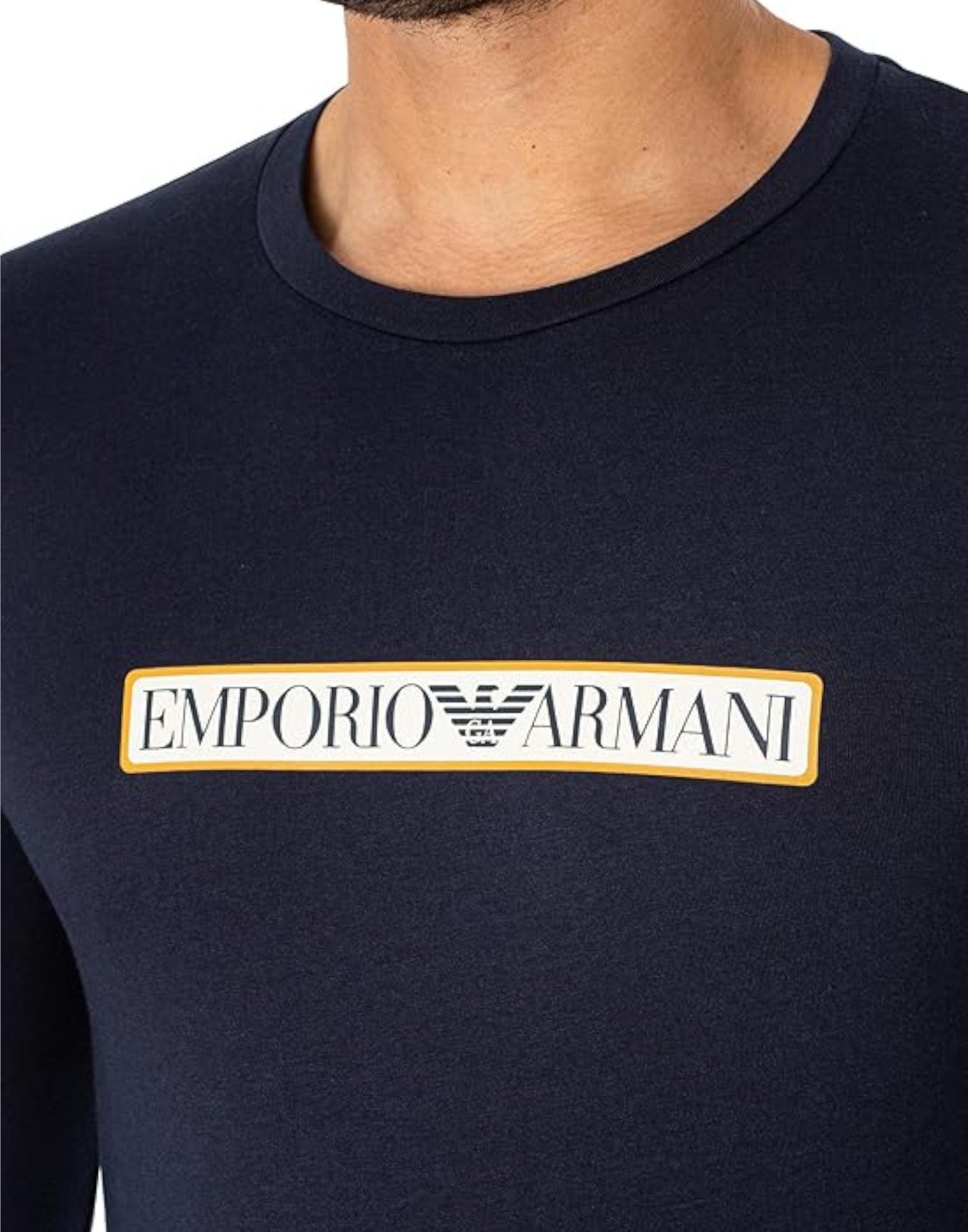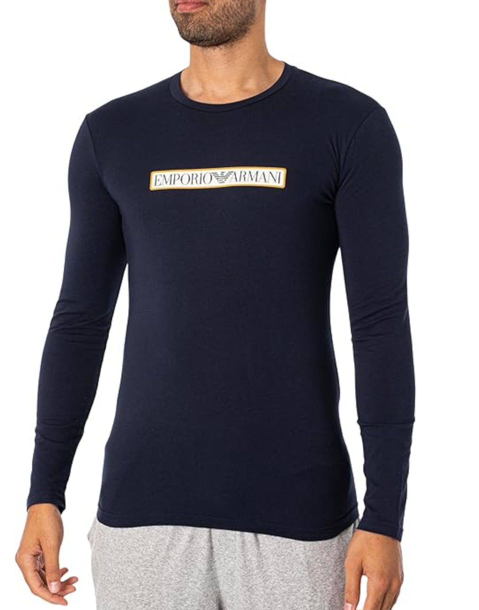 EMPORIO ARMANI UNDERWEAR MAGLIA IN COTONE A MANICA LUNGA BLUE CON LOGO LETTERING NELLA PARTE ANTERIORE.