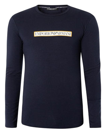 Emporio Armani Underwear Maglia In Cotone A Manica Lunga Blue Con Logo Lettering