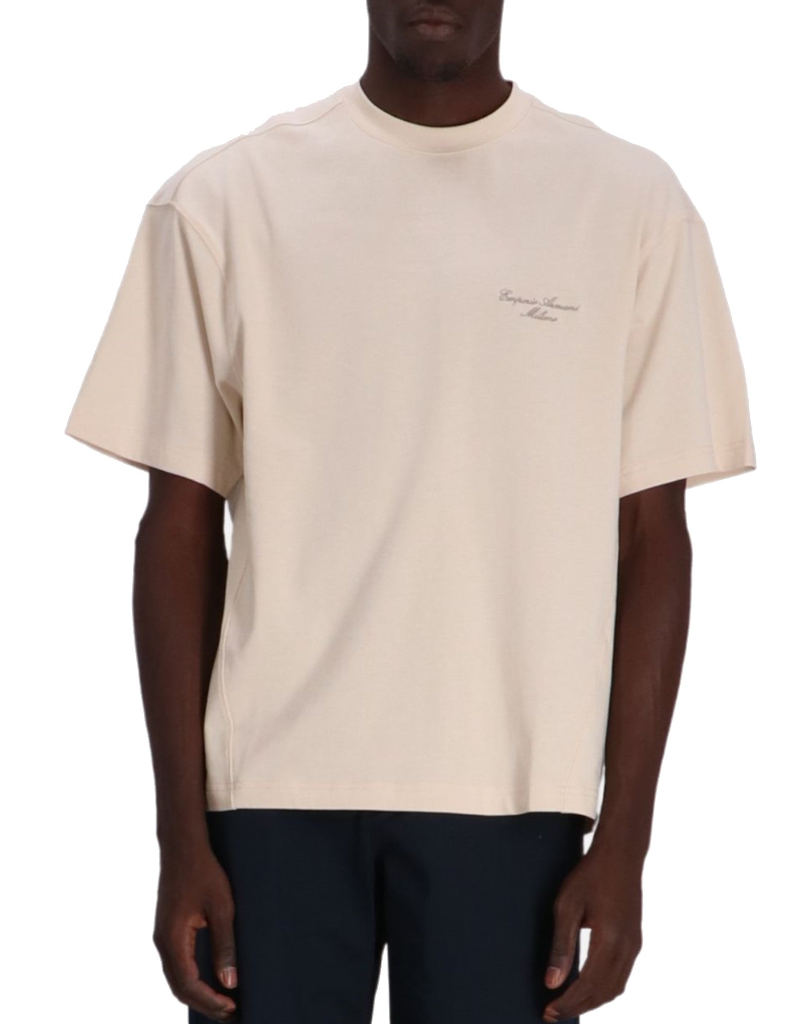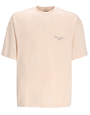 Emporio Armani T-shirt A Manica Corta Beige Con Logo Lettering Ricamato