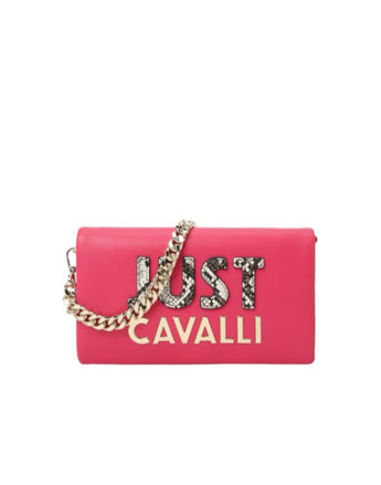 Just Cavalli Borsa Fucsia con tracolla in catena estraibile e logo lettering nella parte anteriore. Interno foderato con due scomparti. Chiusura Borsa con patta e bottone magnetico.